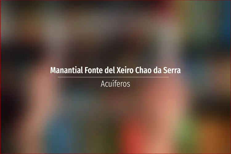 Manantial Fonte del Xeiro Chao da Serra. Acuífero en Asturias: Cuenca: Norte Unidad Hidrogeológica: Unidades aisladas Sistema acuifero: Acuífero aislado Toponimia: Manantial Fonte del Xeiro Chao da Serra Cota: 670 Naturaleza: Manantial ...