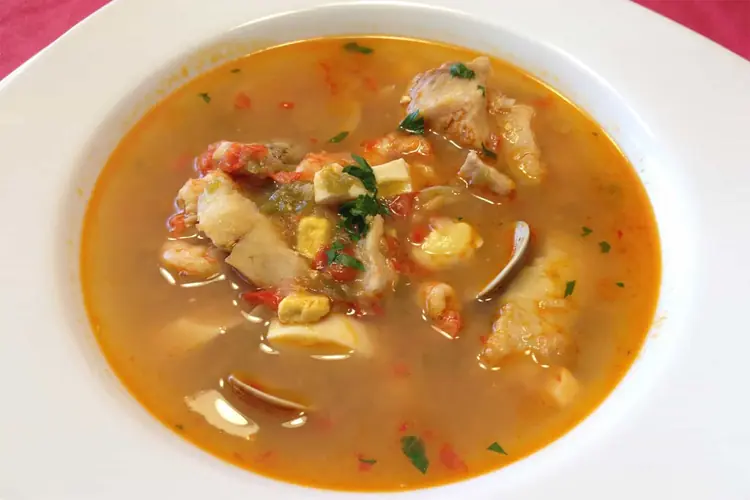 Sopa de pescado. Ingredientes: ½ kg de pescado, que no sea azul ½ corteza de limón 1 cebolla 80 gramos de pan frito 1 cabeza de ajo 1 cucharada de pimentón perejil aceite sal Preparación: En una olla con agua y sal pondremos ...